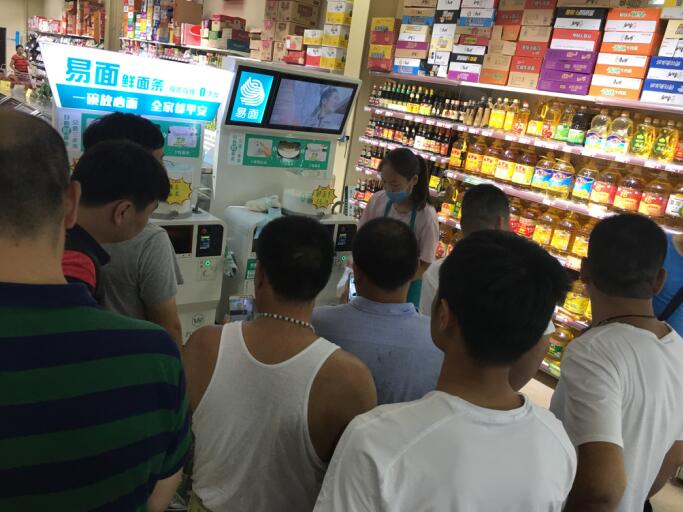 將近4個(gè)小時(shí)的走訪,讓嘉賓們充分了解了終端店主對(duì)鮮面機(jī)項(xiàng)目的態(tài)度以及消費(fèi)者對(duì)0添加現(xiàn)制鮮面條的市場(chǎng)反饋,感受到萬(wàn)杰智能鮮面機(jī)項(xiàng)目的優(yōu)勢(shì)與機(jī)遇,從面粉到面條只需8秒鐘,制作過(guò)程全部收入老百姓眼中,只為一碗干凈美味的面條。 22日上午,嘉賓走訪許昌樣板市場(chǎng)