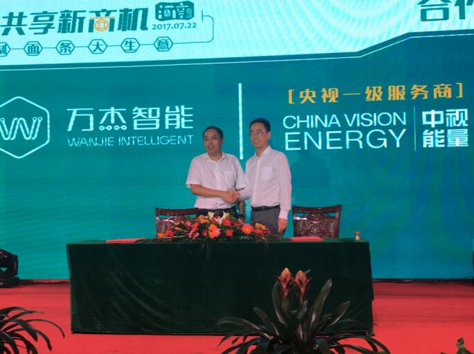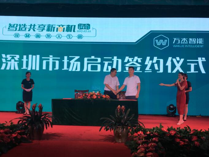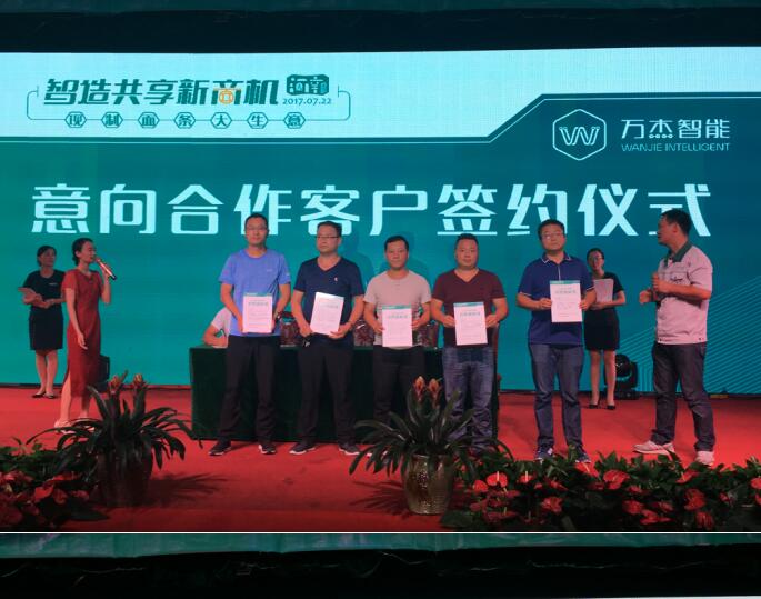 晚宴即將開(kāi)始時(shí),仍然有很多意向合伙人想要加入萬(wàn)杰智能鮮面機(jī)項(xiàng)目中來(lái),會(huì)務(wù)組因此臨時(shí)調(diào)整會(huì)議流程,推遲晚宴開(kāi)始時(shí)間,為意向合伙人留出更多簽約時(shí)間,最終,萬(wàn)杰智能成功與30余位意向合伙人簽署了意向合作書(shū)。 萬(wàn)杰智能與中視能量(央視一級(jí)服務(wù)商)簽訂戰(zhàn)略合作協(xié)議 萬(wàn)杰智能深圳市場(chǎng)正式啟動(dòng)儀式 城市合伙人簽約儀式