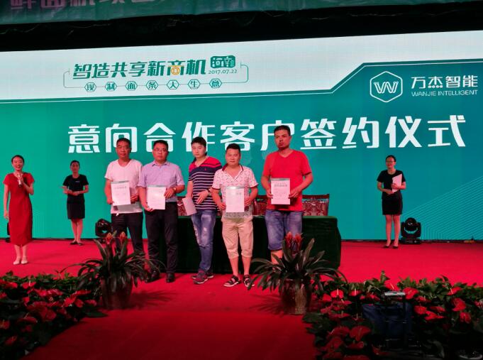 7月22日,智造共享新商機(jī),萬(wàn)杰智能鮮面機(jī)河南大區(qū)定向招商大會(huì)在許昌成功落下帷幕。超過(guò)70家意向合伙人(170余人)齊聚本次招募大會(huì),當(dāng)天有30余家意向合伙人簽訂合作意向書(shū)。