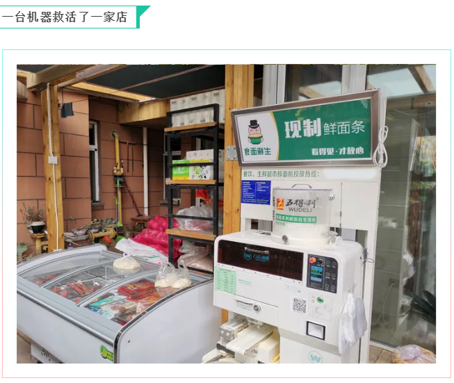 這是一家社區店,在有了開店的這個想法后,還沒開始張羅店里的其他東西,店主就急忙給臨汾市合伙人王京臨的孩子交了錢,鎖定了育仁花苑小區鮮面機的運營權,因為房子是自己的,雖然在很大程度上降低了運營費用,但因為此小區入住率低,且已經有4家社區店存在,在店開起來的一段時間內,并沒有多少人氣,“我跟我老公說,全靠了這臺機器救活了我們店,店雖多,但能吃上這個面條的只有我們家,人氣越來越旺了,誰買面還不順帶著買把菜啊”。