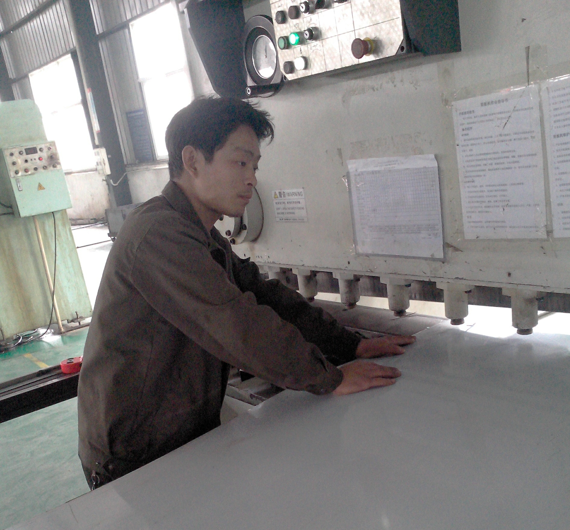 鈑金車間職工趙旭峰和李迎光兩位同志,分別于12年12月份和13年4月份入職。利用自己掌握鈑金技術(shù)和經(jīng)驗(yàn),在外購聰明象車間自由撞擊門的基礎(chǔ)上進(jìn)行了優(yōu)化制作:為了達(dá)到外觀美觀大方,給自由撞擊門加裝了寬包邊,雙折彎打密封膠這樣既美觀又結(jié)實(shí);用“十”字不銹鋼螺絲將包邊和門框鎖在一起,解決了門框和墻體的空隙,同時(shí)也便于拆裝;節(jié)約材料將門頭的一根槽鋼節(jié)省下來,同時(shí)也達(dá)到了強(qiáng)度需要;自己掌握了自由撞擊門的角度數(shù)據(jù)可以設(shè)計(jì)不同尺寸的門,這樣自己制作同樣尺寸大小門成本節(jié)約了60%左右。